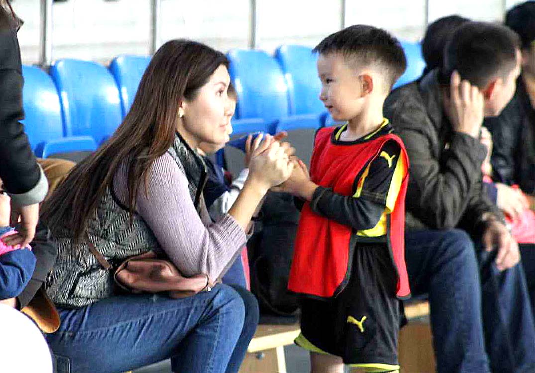 Родители также подготовились к предстоящим стартам и некоторые из них даже пришли с нарисованными плакатами в поддержку команд. С трибун мамы и папы подсказывали малышам и записывали все игры на видео.